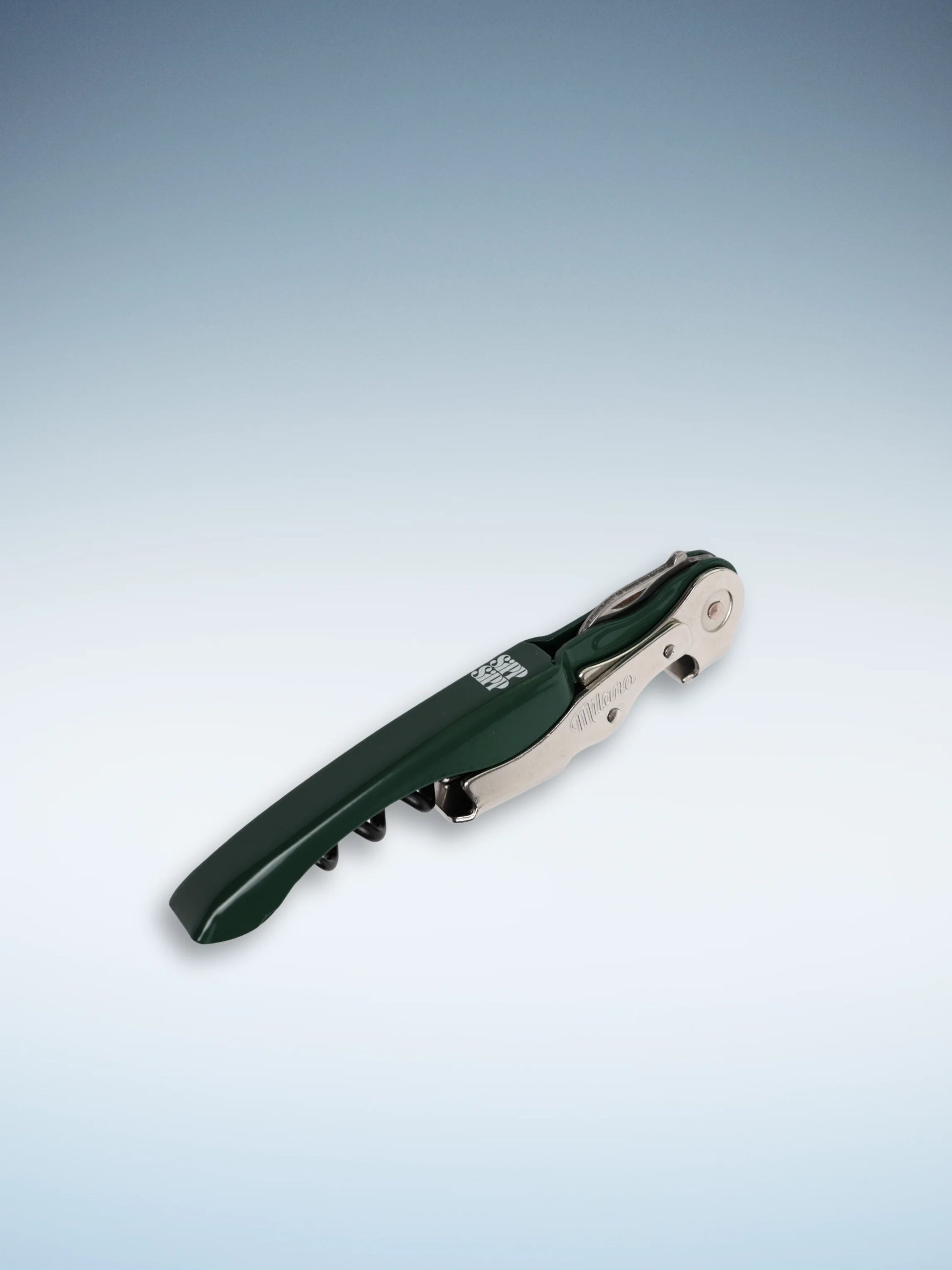 This wine opener features a patented two-step lever with an automatic shift for easy use. The corkscrew is coated with teflon to effortlessly slide through the cork, and the handle is rubberized for added comfort.